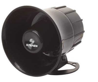 Sirena redonda de seis tonos diferentes, de 110 dB, 10 Watts y alimentación de 12 Vcc. Mide 10 cm (4 pulgadas) de diámetro x 11,2 cm de alto y está fabricada en plástico ABS color negro. Por su alto volumen y agudo sonido, es muy útil en sistemas de alarmas, ya que atrae la atención inmediatamente, ahuyentando a cualquier intruso.